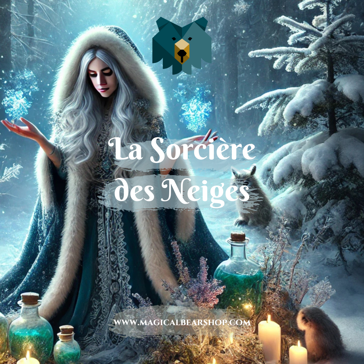 Dans les profondeurs de la forêt magique, lorsque les premiers flocons commencent à danser dans le ciel, la légendaire Sorcière des Neiges se réveille de son long sommeil. Cette mystérieuse gardienne de l’hiver, avec ses cheveux argentés et son manteau de glace scintillant, veille sur chaque créature qui habite la forêt. Armée de potions faites de neige éternelle et de fleurs glacées, elle soigne les animaux blessés, apaise les âmes tourmentées et apporte chaleur et protection à ceux qui en ont besoin. Sous sa garde bienveillante, l’hiver devient un havre de paix pour la faune de la forêt enchantée.